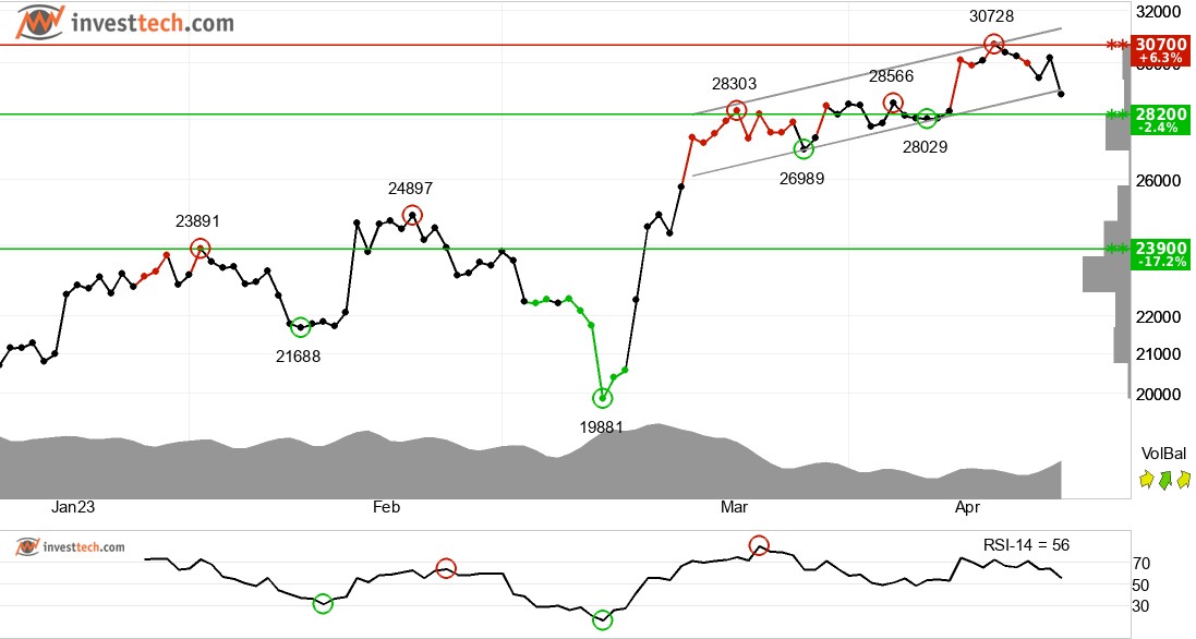 투자자들은 비트코인을 사기 위해 시간이 지남에 따라 더 높은 가격을 지불했고, 통화는 중장기적으로 상승 추세 채널에 있다. 이는 투자자들 사이에서 낙관론이 증가하고 있음을 의미하며 지속적인 상승을 의미한다. 가격표에 아무런 저항이 없으며 추가 상승이 표시됩니다. 부정적인 반응이 있을 경우, 통화는 약 25,000 포인트에서 지지를 받고 있다. RSI는 가격에 대해 부정적인 차이를 보이며, 이는 하향 반응의 위험을 나타낸다. RSI 곡선은 하락 추세를 보여주는데, 이는 가격에 대해서도 하향 추세 반전 가능성이 있다는 초기 신호이다. 통화는 전반적으로 중기적으로 기술적으로 긍정적인 것으로 평가된다.