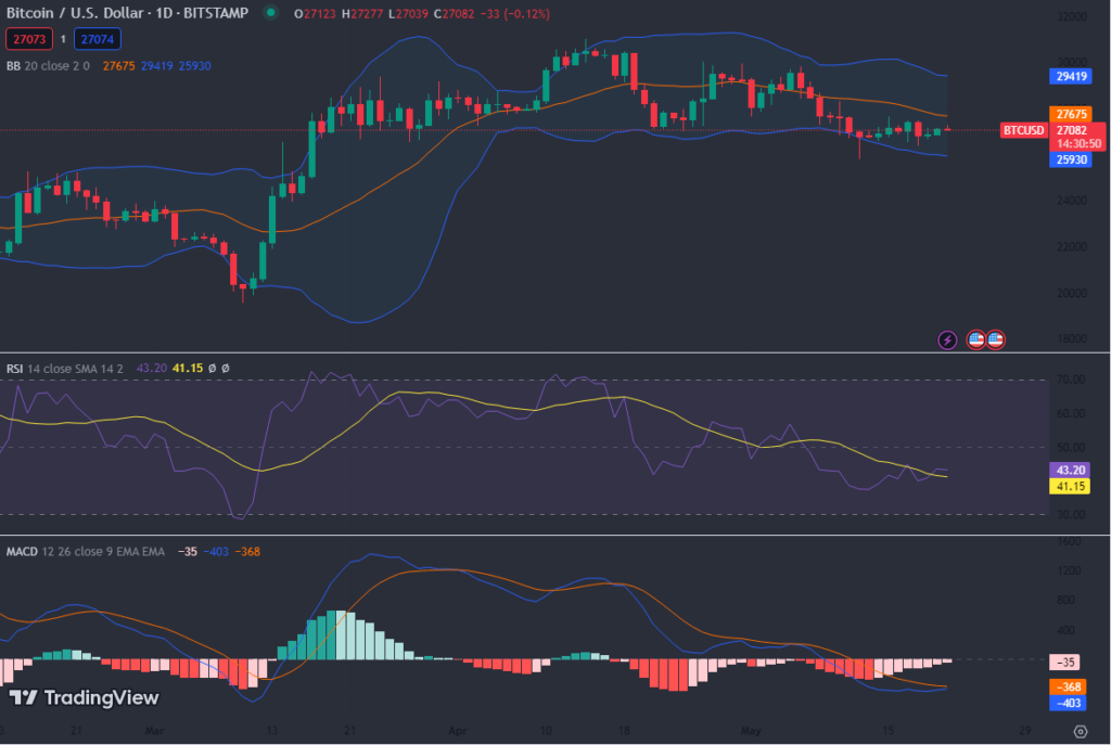 글로벌 시가총액이 거래 하루 만에 0.30%의 소폭 상승을 기록하며 1.13T까지 올라감에 따라 오늘 장이 시작됐다. 암호화폐왕 비트코인(BTC)도 거래 24시간 만에 1% 미만의 완만한 상승세를 기록하며 2만7,000달러 선을 탈환했다.