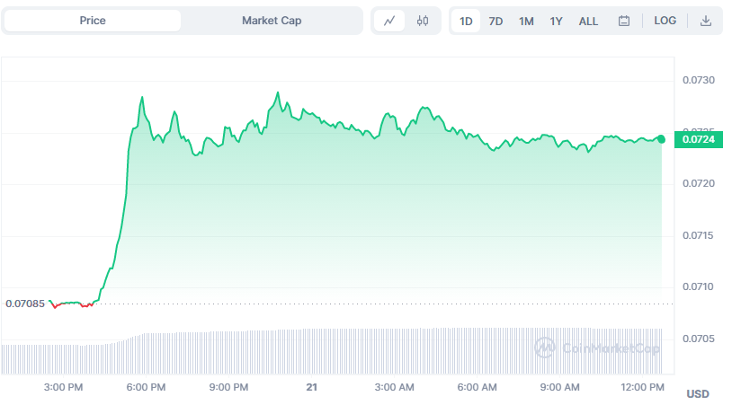 트론(TRX)은 주 4%의 가격 평가 상승률을 기록하면서 거래 24시간 만에 2.2%의 가격 평가 상승률을 기록했다. 트론은 프레스타임 기준 0.07245달러에 거래되며 같은 기간 거래량이 50% 이상 급증했다.