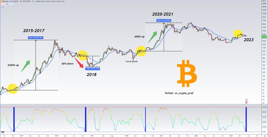 구체적으로, 비트코인은 현재 20개의 관찰된 기간에 대해 지수 이동 평균(EMA) 이상으로 움직이고 있으며, 익명의 암호 분석가 el_crypto_propa.k.a에 의해 관찰된 것처럼 BBWP(Bolinger Band Width Percentile)에서 두 개의 막대를 보여주고 있다. - 6월 13일에 공유된 트윗.