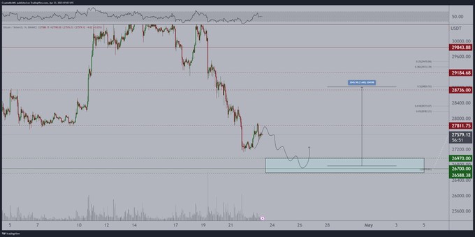 다른 곳에서는 암호화폐 거래 전문가이자 분석가인 마이클 반 데 포페가 지난 4월 23일 트윗을 통해 비트코인이 여전히 27,800달러의 결정적 저항에 직면하고 있다고 지적하기도 했다.