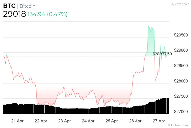 한편, 대표적인 탈중앙화 금융(DeFi) 자산은 프레스 시점에 지난 24시간 동안 0.47% 증가한 29,018달러의 가격으로 손을 바꾸고 있었고, 4월 27일에 검색된 데이터에 따르면 월간 차트에서 6.75% 증가한 것과 마찬가지로 지난 7일 동안 0.64%의 완만한 상승률을 기록했습니다.