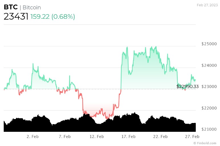 한편, 비트코인은 최근 차트에서 알 수 있듯이 주간 하락폭 3.52%에서 0.68% 소폭 상승하며 지난 30일간 1.51% 상승한 것을 보여주며 프레스타임에 2만3431달러에 거래되고 있다.