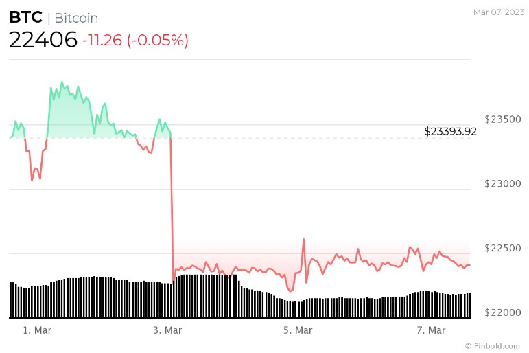 보도 시간에, 차트에서 알 수 있듯이 대표적인 분산형 금융(DeFi) 자산이 일주일 동안 4.73%, 지난 30일 동안 4% 하락한 것 외에도, 비트코인은 지난 24시간 동안 0.05%의 미미한 하락을 나타내는 22,406달러로 손을 바꾸고 있었다.