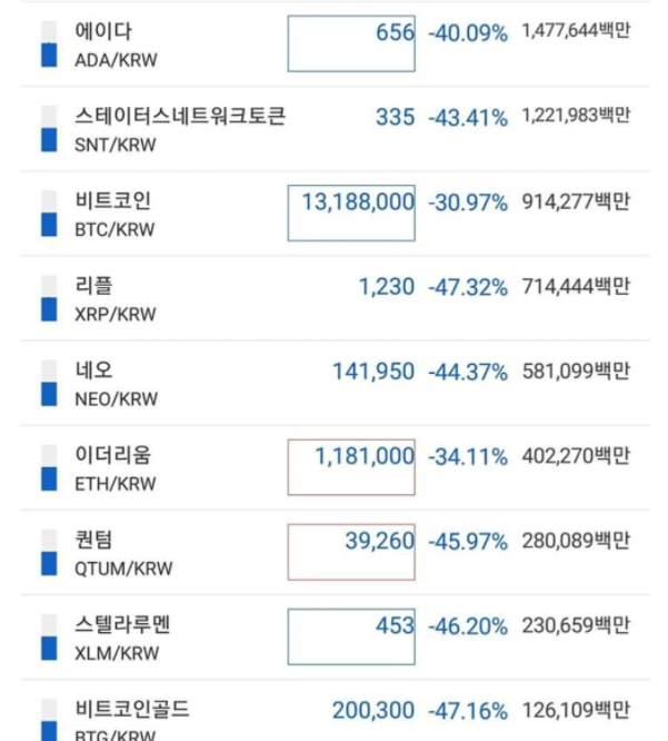 사람들의 코인 계좌에는 -70%~-80%가 즐비했다.