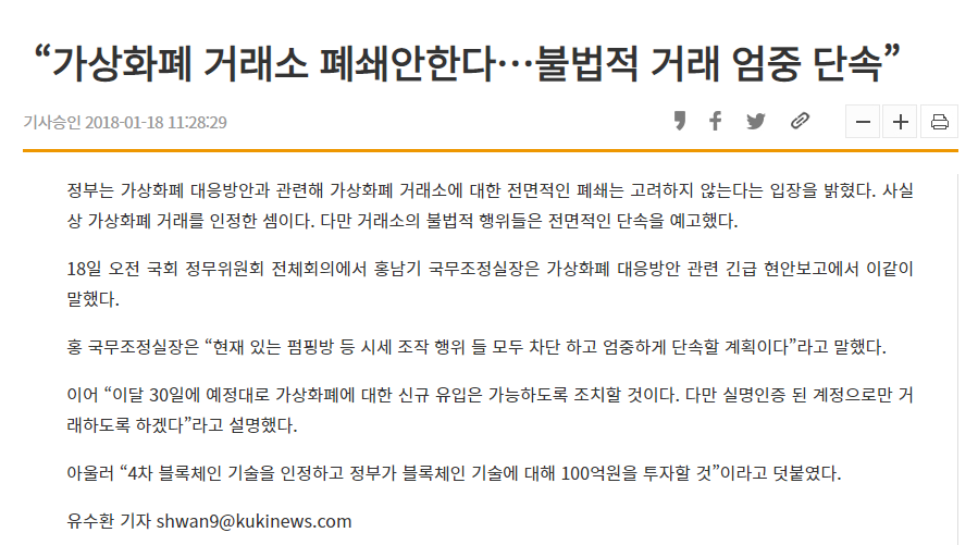 그리고 2018년 1월 11일, 당시 법무부장관이던 박상기 장관은 "가상화폐 금지, 가상화폐 거래소도 폐쇄 포함한 조치 예정"